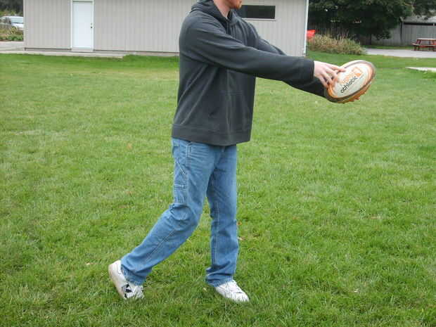 Como hacer pivotar la bola de derecha a izquierda, verá que su mano derecha comenzó en la parte posterior de la bola y en el exterior. Al empezar a hacer pivotar la bola a través de su cuerpo la mano derecha comenzará a girar desde el exterior de la bola en la parte superior y en el interior de la bola. Este giro natural empezará a poner un giro en la bola.