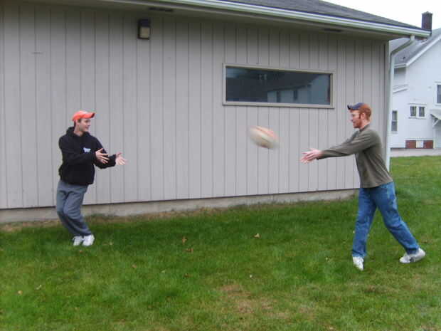 Para practicar su lanzamiento puede sostener la parte de atrás de la pelota con la mano y lanzar la bola con una mano a un compañero de práctica. Su pareja debe estar parado sobre una yarda o dos y girar la pelota con la muñeca. Para este ejercicio debe venir sobre todo el tiro de la muñeca y no de su brazo. Este ejercicio le ayudará a construir los músculos de las muñecas y también ayuda a su coordinación.