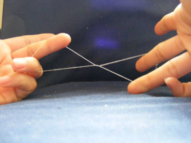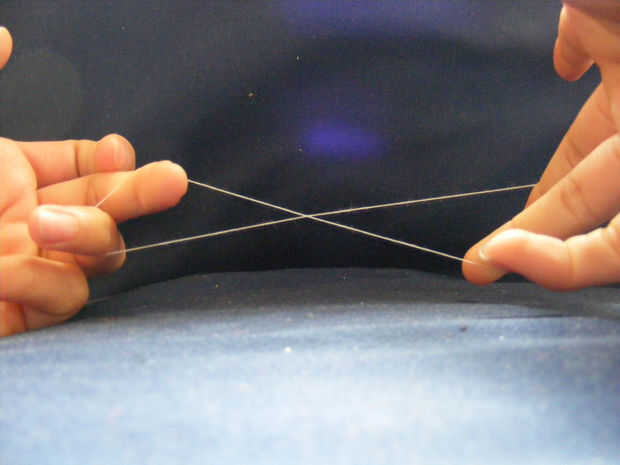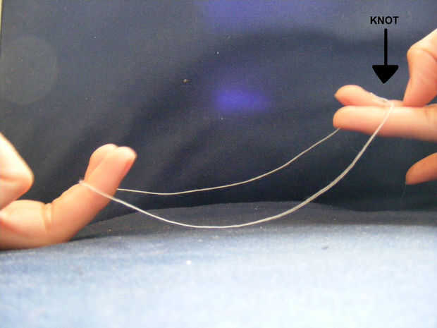 -Inserte dos dedos de ambas manos en el lazo. Asegúrese de mantener el nudo en los dedos para mantenerlo oculto.