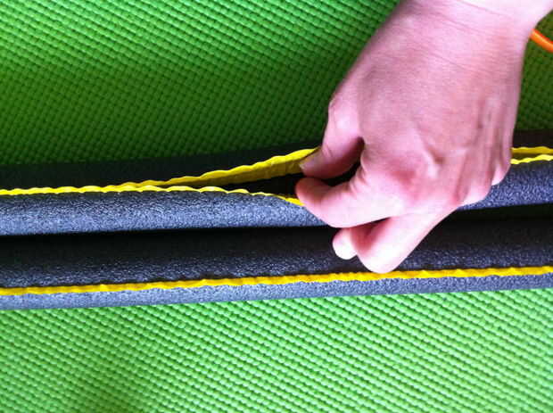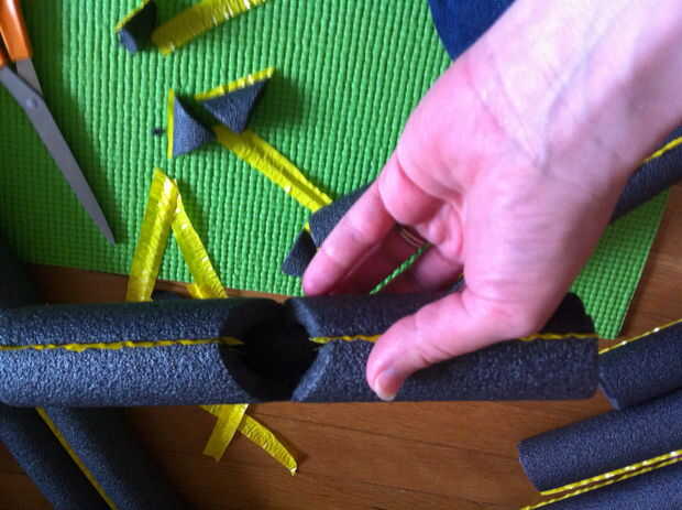 Averiguar cómo largo que usted quiere cortar el tubo. Yo quería hacer esquinas protectoras y luego pedazos para ir entre las esquinas para cubrir la longitud de mi mesa. Se adapta, es bastante simple.