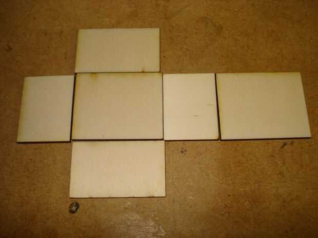 Las caras de cada forma deben ser láser antes de configurar la plantilla de mitre. A menudo se trata de cortar al tamaño deseado pero en el caso del cubo que los lados pueden cambiarse para hacer cualquier caja de formas regulares. Los paneles deben formar una red básica para el cuboides.