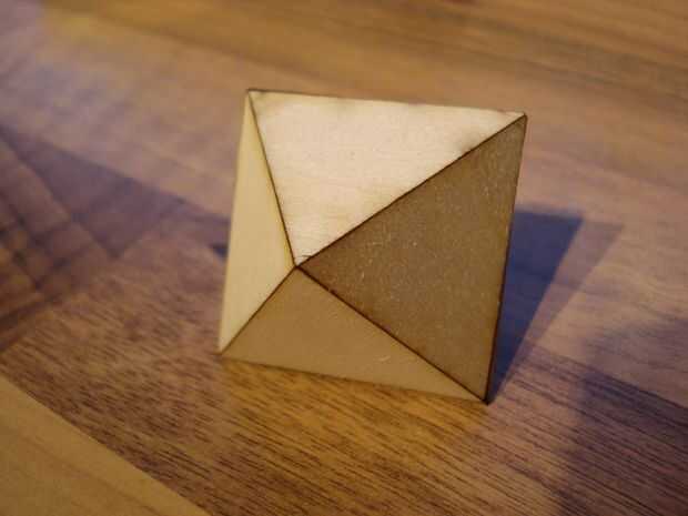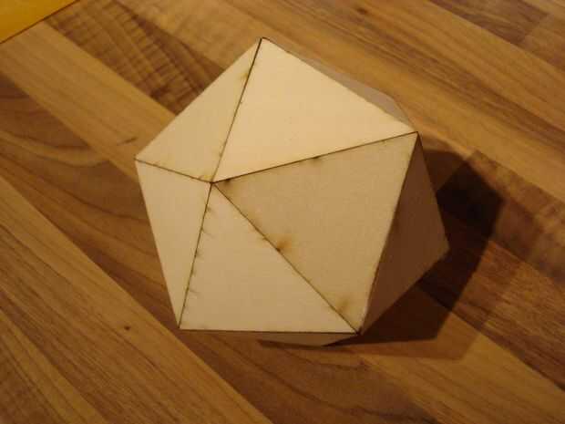 Construimos 3 diferentes plantillas angulares para propósito de la prueba. La plantilla de cuboides de 45 grados, la plantilla octaedro 32,5 y la plantilla del icosaedro 20,9 grados.