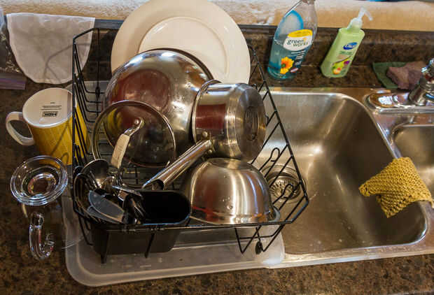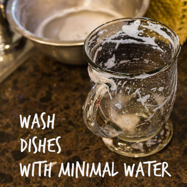 Cuando vivía en una caravana, tuvimos el lujo de agua pero era una oferta limitada de agua dulce fría. Con esto tuve que aprender a hacer platos más eficientemente, sin agua caliente y con desperdicio mínimo de agua.