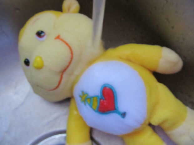 Enjuague bajo agua fría y seguir exprimiendo la espuma.