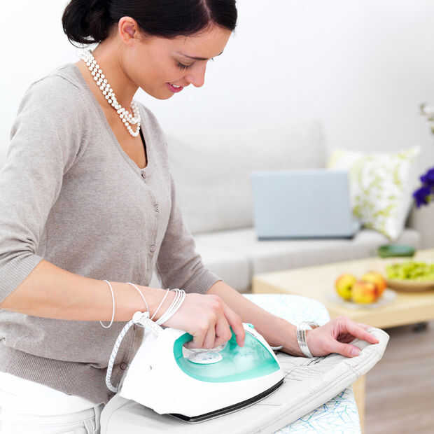 - Coge la plancha por el mango y lo incline para que la cara paralela a la tabla de planchar.