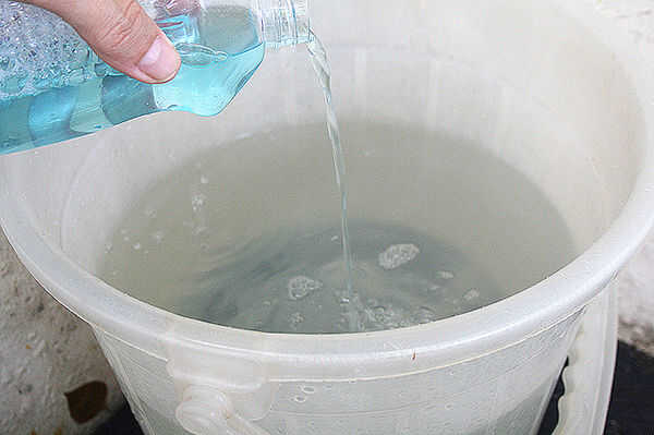 Vierta una tapita de la colada de coche limpiador en un balde y llenar un poco más a la mitad con agua del grifo. Jabón lavado de coches está especialmente diseñado para limpiar las superficies exteriores de un coche sin el desmontaje de la cera, y por lo general se vende junto con la cera y coche detallando los productos en las tiendas. Mezclar la primera esponja en el cubo a remojar agua y limpiador.