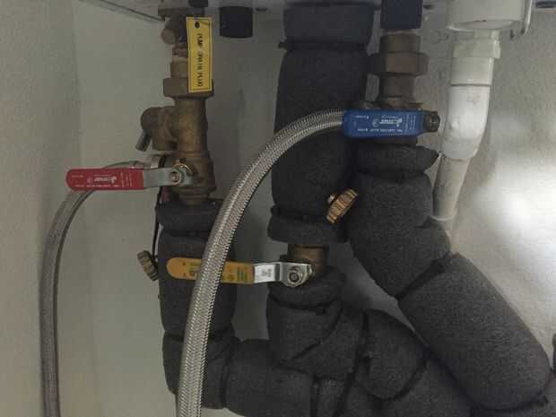 Vaciar el cubo de 5 galones de agua recogida de las válvulas de servicio.