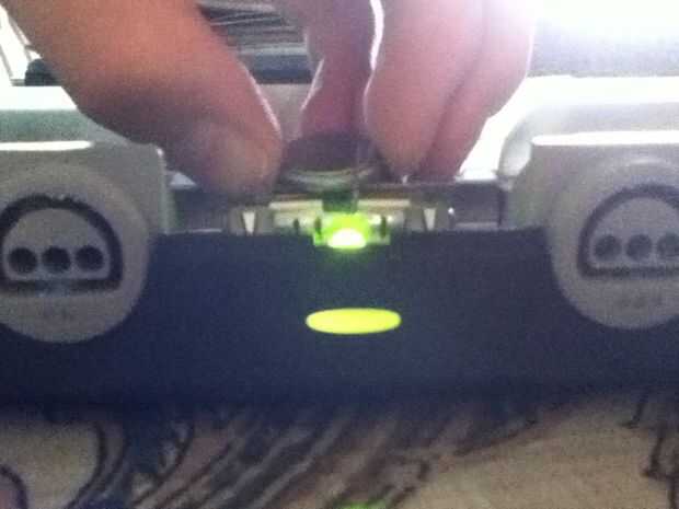 Obtener una batería de 3v y algunos leds de 3v. Cuando ha abierto n64 que se puede ver la parte donde el led rojo brilla a través. Poner el led de la batería una peg en la parte superior en inferior y del palillo que junto a la pieza del plastick ver lo que te gusta