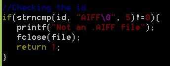 – Leer los siguiente cuatro bytes. Nota: Consulte el paso 3. Nota: Después de leer estos bytes puede comprobar si el formato de archivo es realmente .aiff o no (véase el cuadro arriba).
