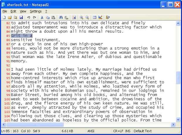 1. open text en Notepad2 o Bloc de notas liso.