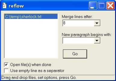 Si se rompen las líneas en el texto, pero cada párrafo comienza con nueva línea, consulte "Líneas vacías uso como separador".