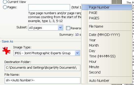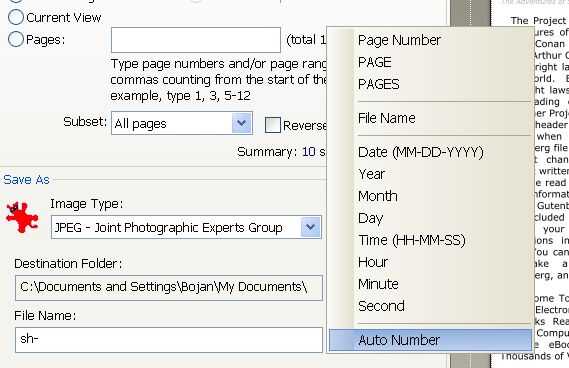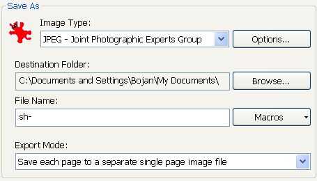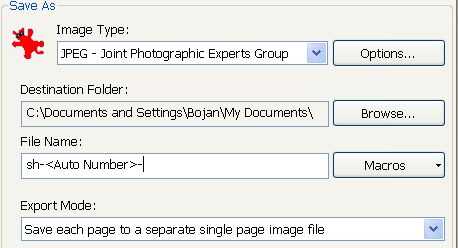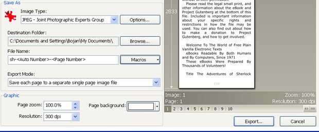 1. exportación de modo: "Guardar cada página en archivo de imagen diferentes"