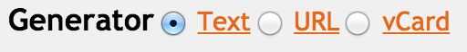 este es un sitio web para que los códigos QR. Primero debe elegir si desea mostrar texto, un sitio web o un V-card. Escriba en su mensaje, elija el tipo de archivo, tamaño y color y el código QR que aparecen a la derecha.