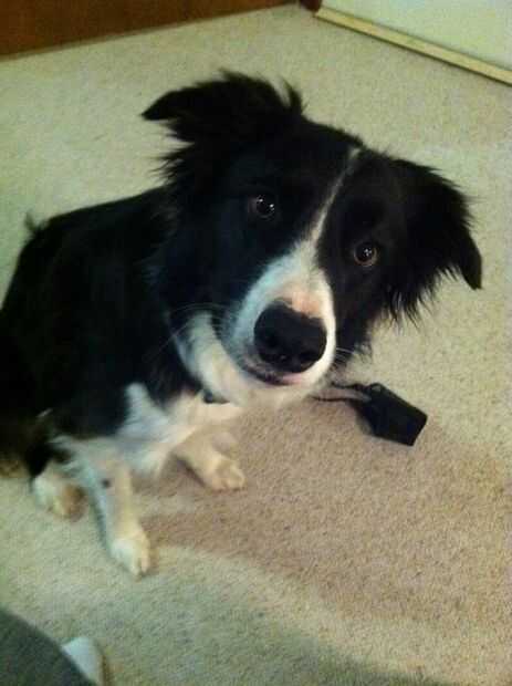 Oídos están relajados o para arriba y tal vez meneando la cola del perro. Mayoría de los perros que está contenta se jadeando, otros no. Los perros tal vez se concentraron en un juguete o tratan.