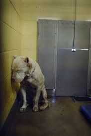 Perro es tensa. Evitando el contacto con los ojos, oídos se acoplan a la cabeza. Puede ser escondido en una esquina o está acostado y manteniendo a sí mismos. Perro está encogido, cola entre las piernas. Se baja la cabeza y los ojos son anchos o cerrado. Perro puede ser pánico corriendo y ladrando, depende el perro.
