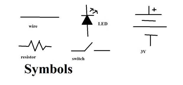 La foto de arriba muestra algunos símbolos. Una línea es un alambre. Un zigzag es una resistencia. Un rectángulo con dos líneas sin tocar también es una resistencia.