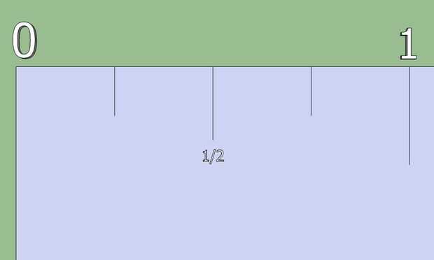 CORTE otra vez! Para cada sección de la pulgada, córtelo por la mitad como se muestra en el cuadro 1. Aviso hay dos marcas ahora en vez de uno, porque tenemos dos secciones: uno a cada lado de la marca de 1/2 pulgada.