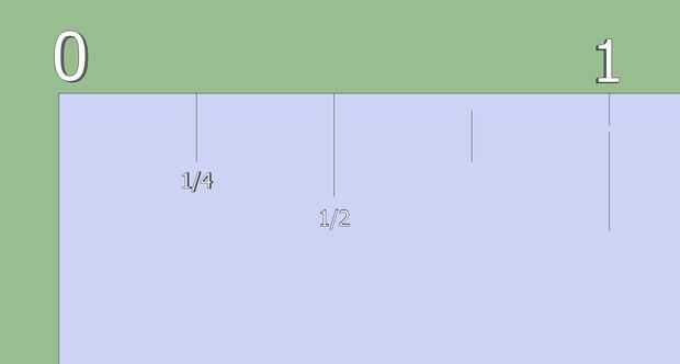 Aquí es donde se pone un poco diferente. Hay dos marcas sin etiqueta en la regla. Vamos a contarlos en cuartos, la primera marca 1/4, la segunda marca sería 2/4, pero ya está etiquetado como 1/2 y la 3 º marca será marcada como 3/4. Cuenta 1/4' ths-1/4, 2/4, 3/4, 4/4. Véase el cuadro 4.