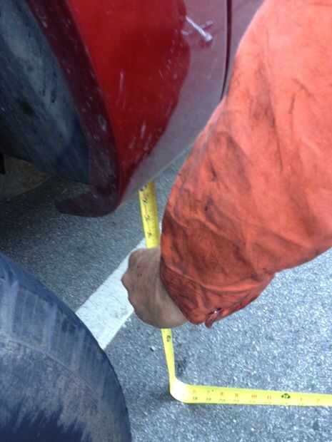 quería saber exactamente cuántas pulgadas ser levantando la parte delantera así que medimos desde el fondo de mi guardabarros delantero al suelo. Asegúrese de que usted hace esto sobre una superficie plana para obtener una medida exacta.