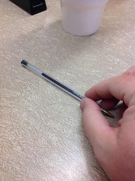 Pellizcar la pluma sobre la anchura de un pulgar por encima del extremo puntiagudo. Si el lápiz se tapa, pellizque la pluma justo debajo de la tapa.