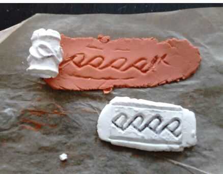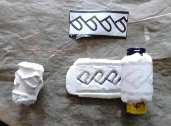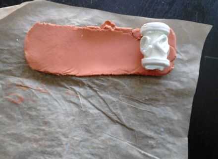 -Preparar una hoja de arcilla recta 2 mm de espesor, el patrón de transferencia sobre esta hoja y tallar la pieza negra de. (en lugar del espacio en blanco en el método estándar). y deje que se seque durante la noche-.