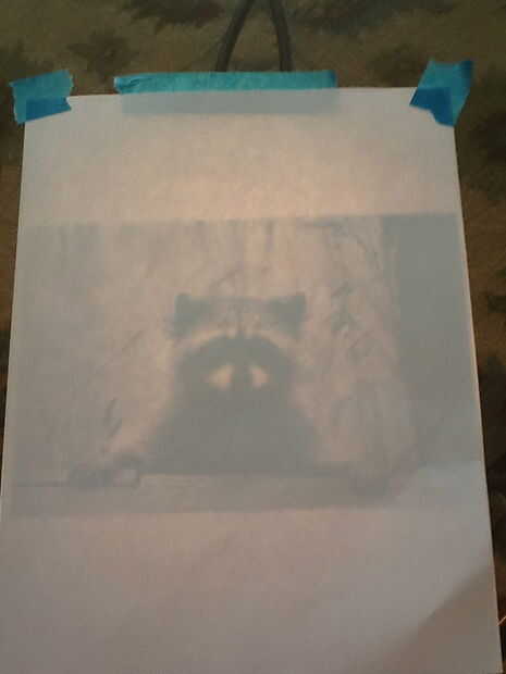 El segundo paso es elegir la imagen y establecer su área de trabajo. En primer lugar, su necesidad para conseguir tu cuadro imprimió en blanco y negro. Elegí un mapache. Una vez tu foto traen al espacio de trabajo y le coloque lámpara así que brilla encima de. Luego, tape la imagen sobre la luz en la mesa. Sobre línea el documento en blanco del cuadro sobre tu imagen y cinta hacia abajo. Ahora estás listo para comenzar a remontar.