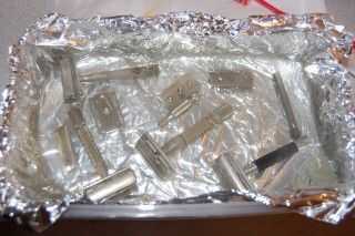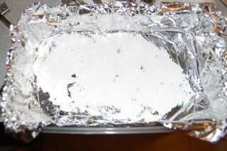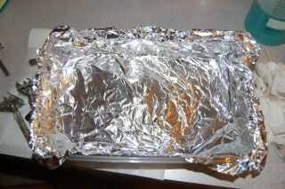 A continuación, línea de la bandeja con papel de aluminio.