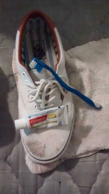 Cómo limpiar blanco furgonetas con pasta de dientes por Roasters Inc. (1 / 3 paso)