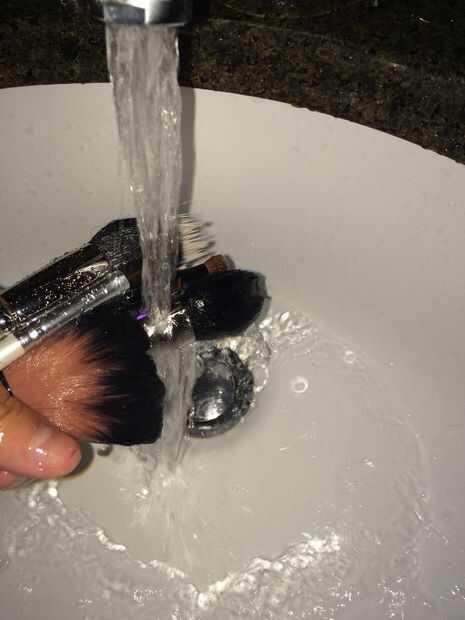 Cepillos bajo el agua de enjuague. El más grande y suelto el cepillo el enjuague más se necesita. Enjuague hasta que cuando las cerdas se exprimen, no salen burbujas. Otro buen indicador es cuando las cerdas no te mancha de jabón.