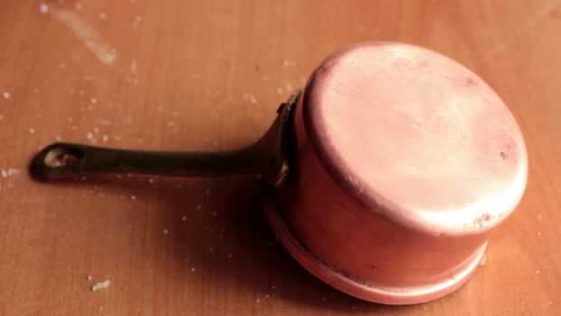 Ponga la sal directamente sobre la pieza y después de agregar la solución saturada de vinagre + sal, frotando muy bien y mira para que el resultado impresionante, la media de sal directamente sobre el cobre es para pulir como la lija y no obtener mucha energía hacen.
