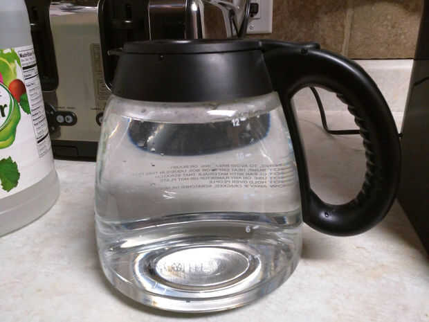 Si esta es la primera vez que nunca has limpiado la cafetera puesto que ya lo tienes, (hace años) necesita utilizar una solución fuerte, hacer una mezcla que sea mitad vinagre y mitad de agua.