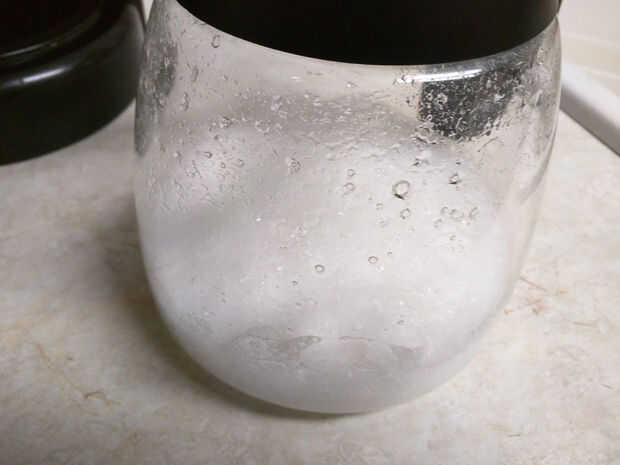 Comience con una 1/2 taza de bicarbonato de sodio y mezclar una taza de vinagre en remolino alrededor de un par de minutos y enjuague con agua limpia, si todavía ves las manchas de café Limpie con una esponja húmeda Borrador mágico, seco.
