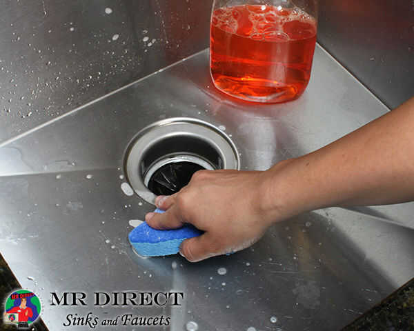 Una vez que el fregadero se enjuaga y se seca, use un detergente suave o ultra suave abrasivo para fregar la superficie. Siga las instrucciones del fabricante en la botella y frote siempre en la dirección de la veta de fregadero. Este tipo de limpiadores son generalmente disponible en la mayoría de los supermercados y ferreterías.