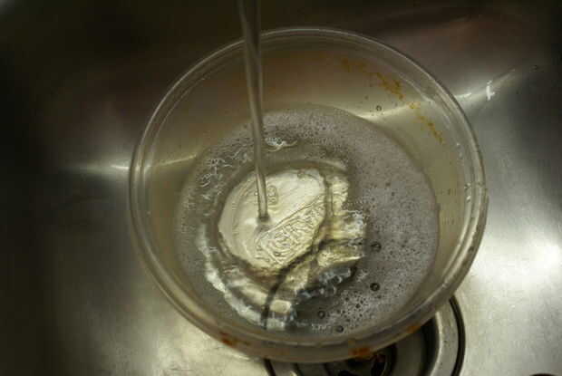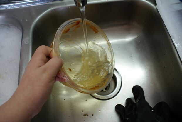 Cómo limpiar correctamente un tazón de fuente plástico desagradable mancha. (2 / 4 paso)