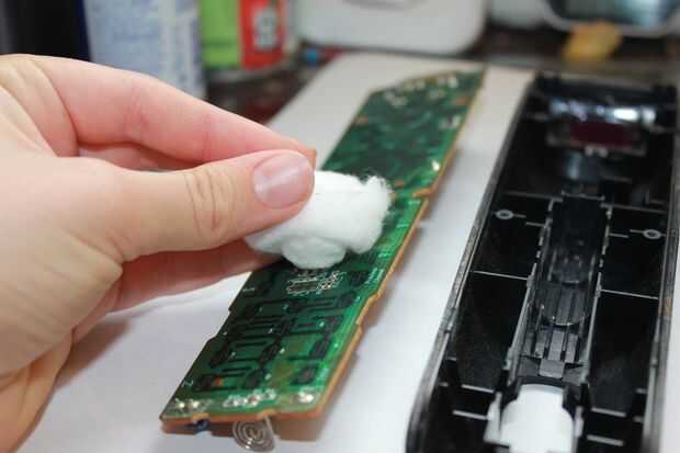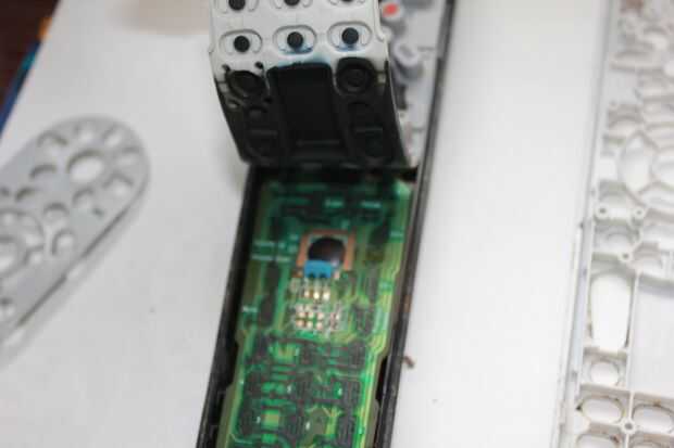 Retire el teclado de goma que revela la placa de circuito Limpie los contactos con una bola de algodón y alcohol isopropílico también limpiar la pieza de plástico transparente donde el bláster I.R se sienta detrás.