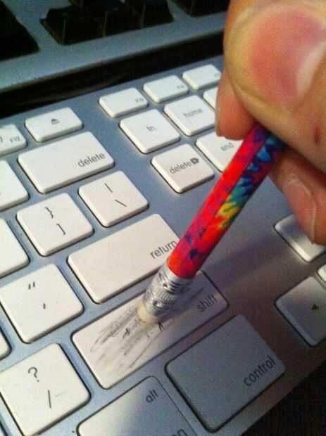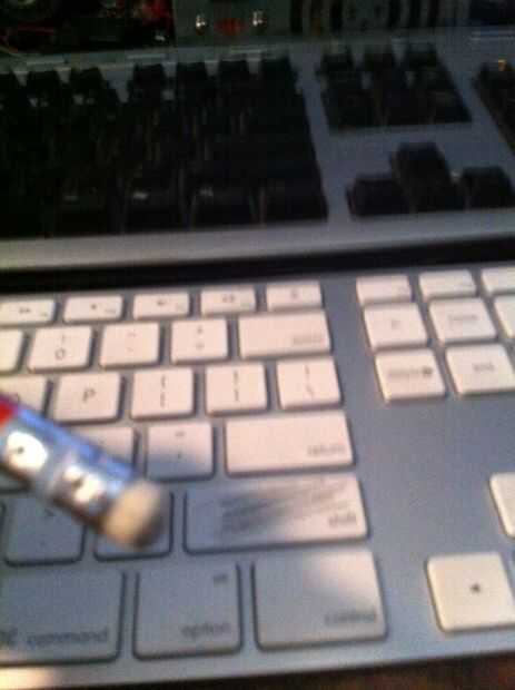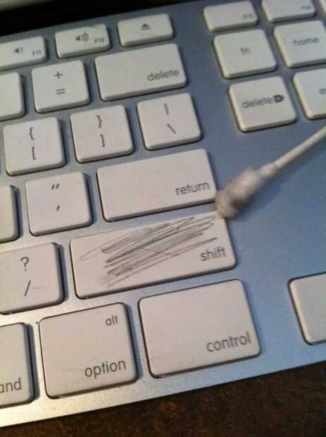 He probado alcohol y un hisopo de algodón, pero que no tome mucho. Así que pensé yo y mi teclado fueron condenados. Hasta que un día que me di cuenta de un lápiz! Es utiliza grafito y utiliza una goma de borrar para quitar el grafito del objeto está escribiendo en el. Así que probé el borrador y listo magia el grafito venía de. Así que si alguna vez obtiene grafito en teclado favorito o nuevo uso una goma de borrar y llegará justo al lado. Este ácaro trabajar para otras sustancias.