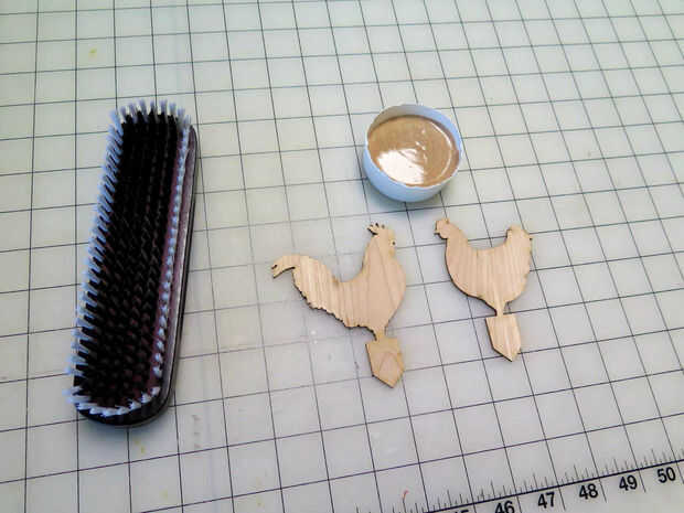 Todo lo que necesitas es un poco de jabón de piedra pómez y un cepillo. Probablemente funcionaría mejor un cepillo de dientes, pero este cepillo de tela hizo el trabajo para mí. Usted puede conseguir fácilmente las marcas de quemadura de la cara de la madera con papel de lija, pero es prácticamente imposible de conseguir en las grietas pequeñas con papel de lija.