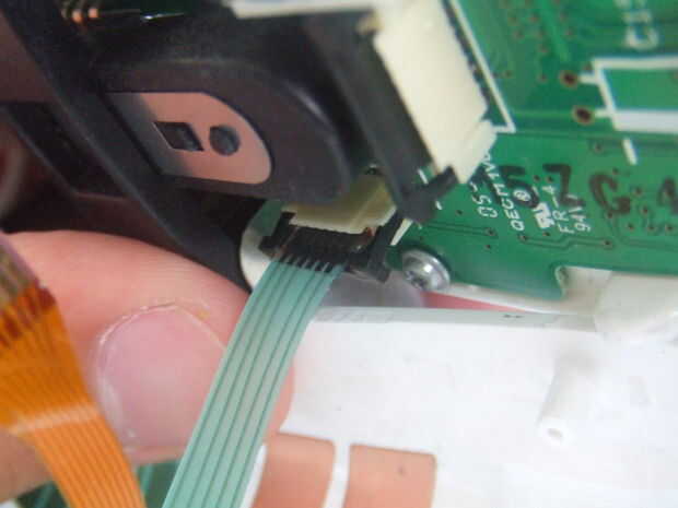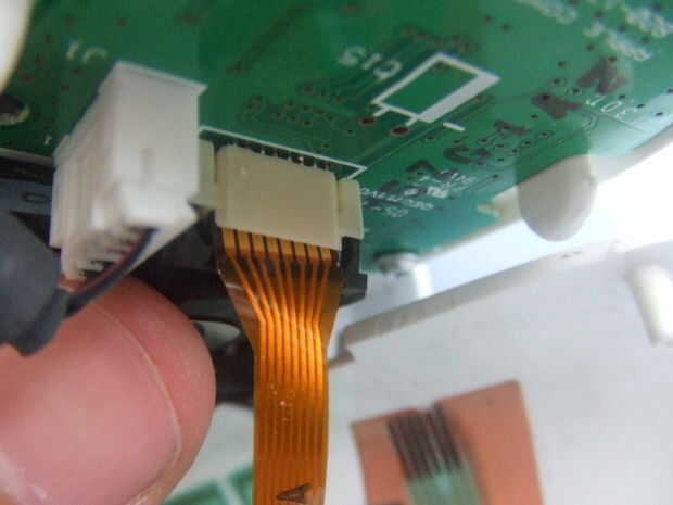 -Cuidadosamente desconecte los dos cables interiores empujando el puente negro que sostiene en.