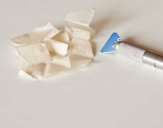 - después de un paso de girar la espátula lo dunk y hacer lo mismo con el lado opuesto del papel, esto evitará que los granos de polvo rayar la superficie