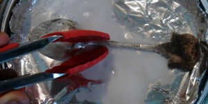 Cuando se produce la reacción química que se hace una vibración que sacude de las partículas de corrosión y de todo lo superfluo.