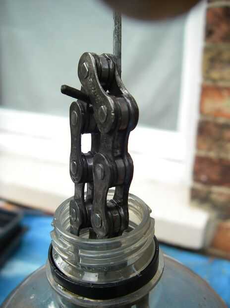 Colocar en un recipiente pequeño y moje en aceite 3 en 1 (o un aceite de cadena especializada costosa.)