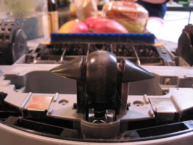 Si eres mamífero como yo, después de algunos meses de Roomba limpiar su habitación, su rueda delantera va tapado con el pelo. Puede tratar de cortar y tirar el pelo hacia fuera, pero guardar su auto cierta frustración e ir a buscar sus herramientas.