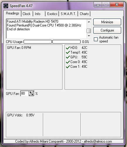 Reinicie su ordenador portátil y abre un programa que monitoriza los voltajes, velocidades del ventilador y temperaturas en ordenadores con chips de monitor de hardware como SpeedFan.