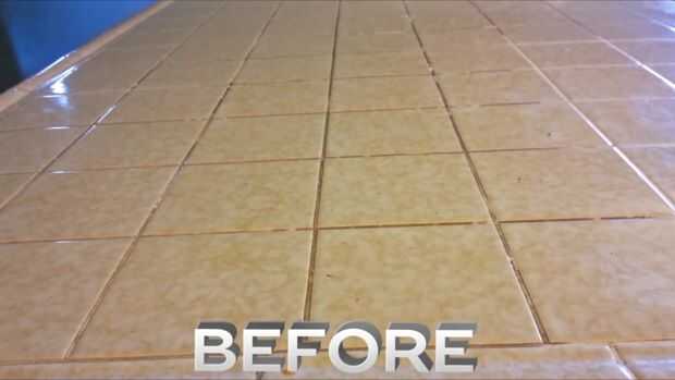 este trabajo de azulejo mejora la apariencia y limpieza de mi antigua cocina de cemento. Fue hecho con azulejos desechados gratis de amigos y la ferretería local. El cemento más oscuro se ve bien con los azulejos más ligeros, y el color ayuda a