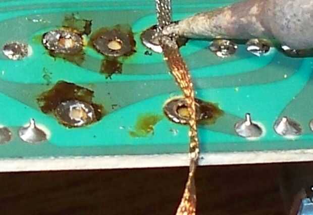 Retirar la soldadura vieja e inspeccione las almohadillas para los restos quemados o rotos.