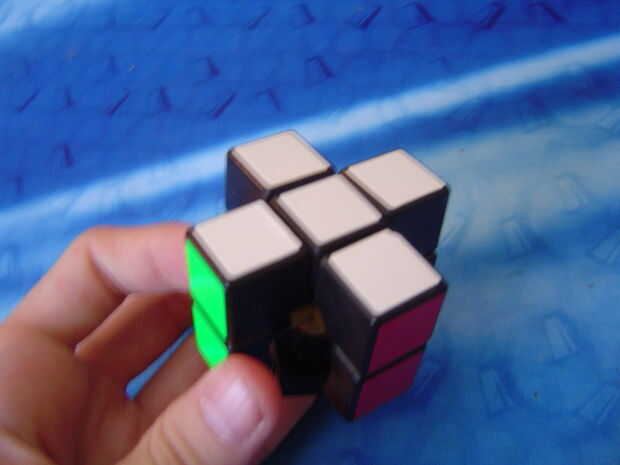 Para poner el borde final a su vez la capa 45 grados y un lado bajo el pedazo de centro de la cuña. A continuación, presione hacia abajo y hacia adentro hacia el centro del cubo.