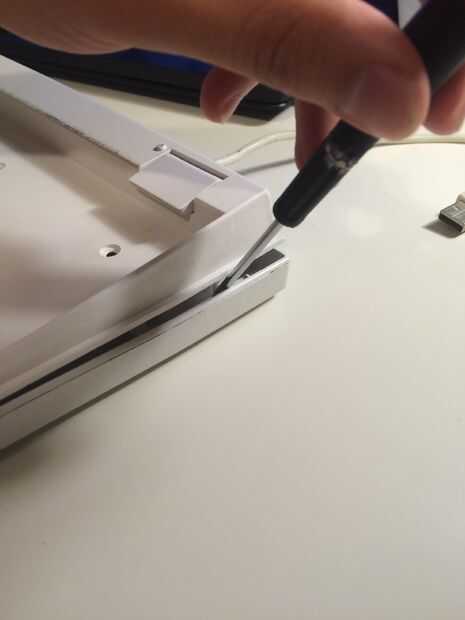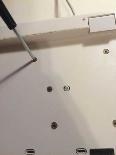 1. Ponga el teclado boca abajo y use un destornillador Phillips para quitar todos los tornillos en la parte posterior.