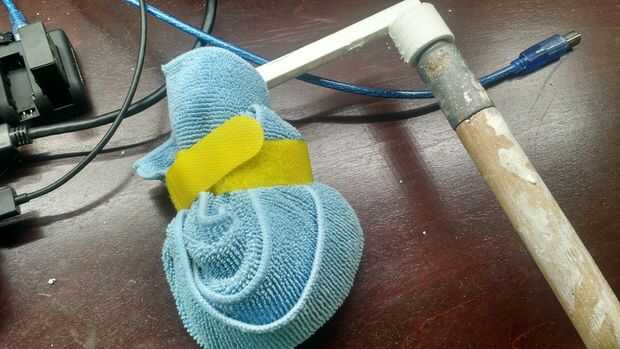 Uso Velcro o algo similar para mantener la aspiradora, si quieres paso por una cremallera ranura atar una cámara en streaming directo en para que pueda ver lo que tu hacer.