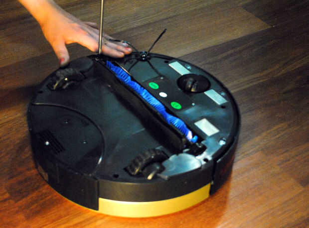 Nota: Si pierde alguno de sus tornillos, un reemplazo viene en cada caja de bObsweep. Asegúrese de utilizar el correcto para el cepillo principal. Es un tornillo de plata un poco más larga, claro. El tornillo de gris más oscuro se hace para el cepillo lateral.