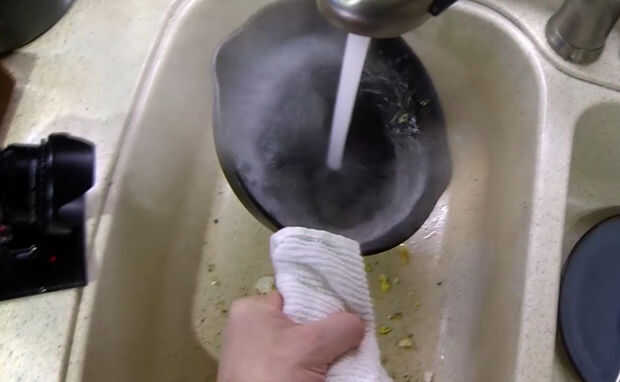 Paso 4: Golpear la sartén caliente con poco de agua y aléjese